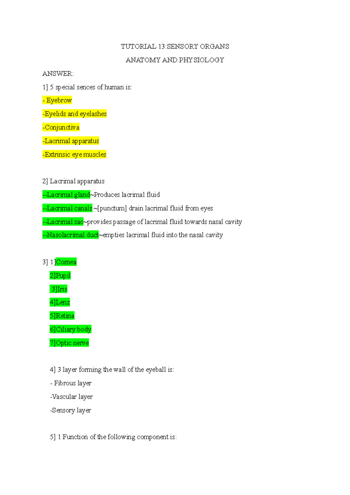Tutorial 13 Sensory Organ Anatomy And Physiology Tutorial 13 Sensory Organs Anatomy And Studocu